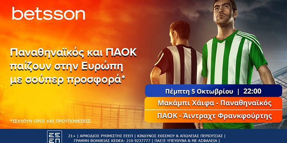 BETSSON ΜΕ ΣΟΥΠΕΡ ΠΡΟΣΦΟΡΑ* ΣΗΜΕΡΑ ΣΤΙΣ ΕΛΛΗΝΙΚΕΣ ΟΜΑΔΕΣ (ΚΛΙΚ ΕΔΩ)