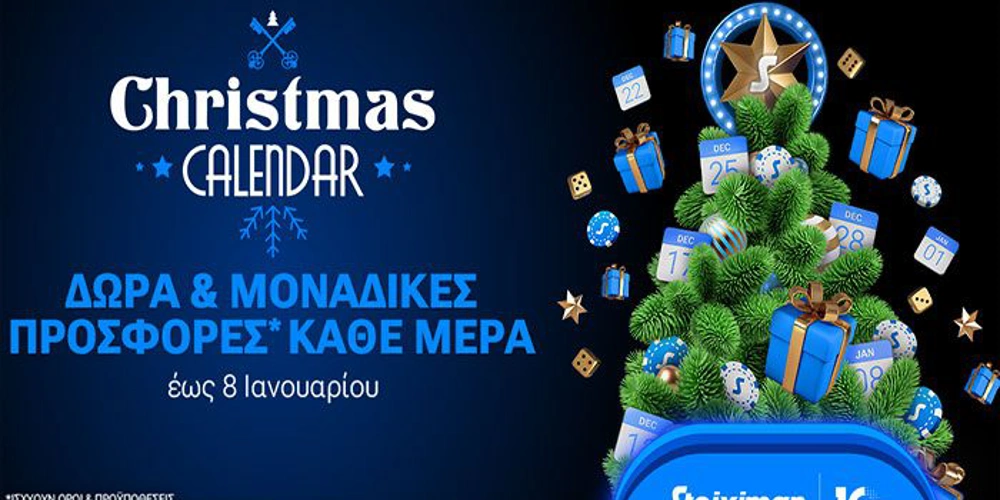 Οι γιορτές ήρθαν… νωρίτερα στη Stoiximan χάρη στο Christmas Calendar. Aπό τις 12 Δεκεμβρίου έως και τις 8 Ιανουαρίου σε περιμένει μία νέα προσφορά κάθε μέρα, ένα ξεχωριστό δώρο κάθε εβδομάδα και ένα μεγάλο έπαθλο* έκπληξη!