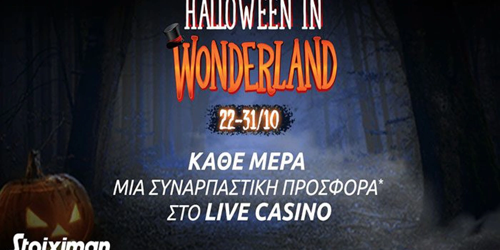 Το διάσημο Adventures Beyond Wonderland Live γίνεται θεματικό γιορτάζοντας το Halloween με σούπερ προσφορά* στο Live Casino της Stoiximan, καθημερινά έως και τις 31/10, από τις 17:00 έως και τις 03:00!