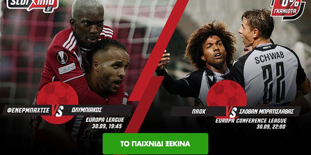 Φενέρμπαχτσε – Ολυμπιακός & ΠΑΟΚ – Σλόβαν Μπρατισλάβας με 0% γκανιότα** και σούπερ ενισχυμένες αποδόσεις (ΚΛΙΚ ΕΔΩ)!