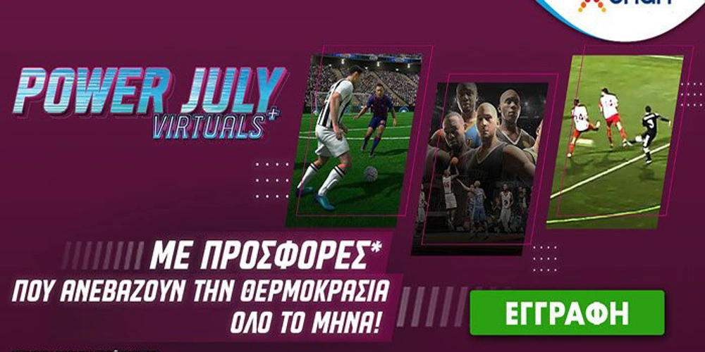 Ο Ιούλιος θα είναι… καυτός στο Pamestoixima! Power July στα Virtuals+ με προσφορές* που ανεβάζουν τη θερμοκρασία όλο τον μήνα!