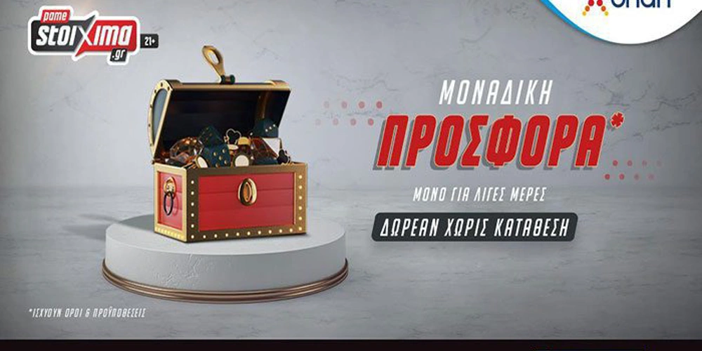 ΚΑΙ προσφορά* χωρίς κατάθεση για όλους (ΚΛΙΚ ΕΔΩ)! 21+ Παίξε υπεύθυνα *Ισχύουν όροι και προϋποθέσεις