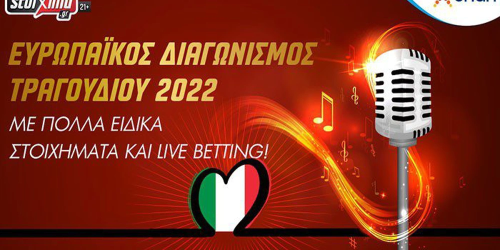 Φυσικά, ένα από τα σημαντικότερα γεγονότα του Σαββάτου (14/05) είναι και ο τελικός του Ευρωπαϊκού Διαγωνισμού Τραγουδιού 2022. Στο Pamestoixima.gr είναι διαθέσιμα πολλά ειδικά στοιχήματα για όλες τις χώρες και φυσικά για την ελληνική συμμετοχή, ενώ ο Ευρωπαϊκός Διαγωνισμός Τραγουδιού θα είναι διαθέσιμος και στο Live Betting με Pamestoixima προσφορές*!